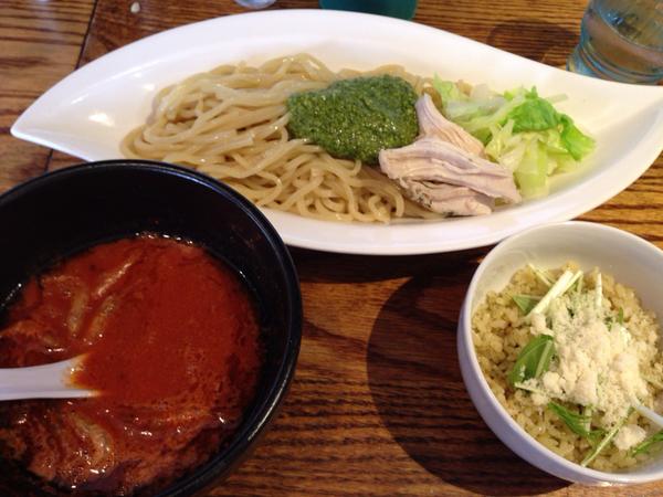 お昼、渋谷のトマトラーメン あかなす家 道玄坂店で海老トマトのつけ麺とジェノバライス。今日閉店らしい。 pic.twitter.com/eLV78q8Wg6 2014-07-27 21:25:00