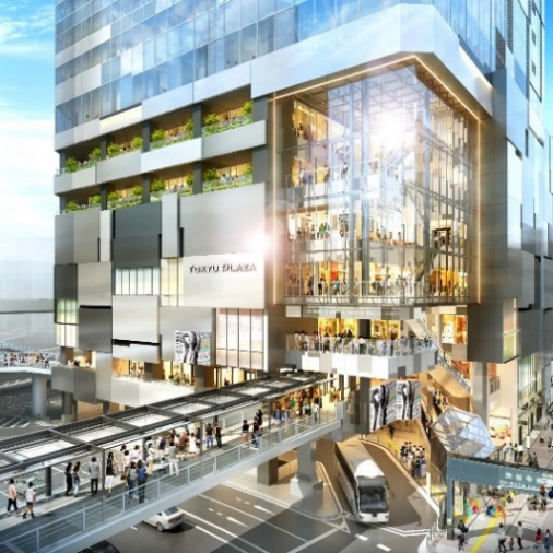 「JR 渋谷駅」などと「渋谷フクラス接続デッキ」で接続されている、「『東急プラザ渋谷』『オフィス』『観光支援施設』『バスターミナル』」などからなる 18 階建て複合施設