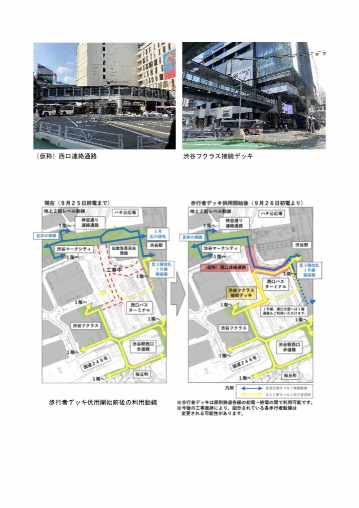 渋谷駅西口、新たな歩行者デッキ「西口連絡通路」「渋谷フクラス接続デッキ」9月26日から供用開始 travel.watch.impress.co.jp/docs/news/1272… #渋谷駅 pic.twitter.com/8RtufPHFt6 2020-08-21 15:17:00