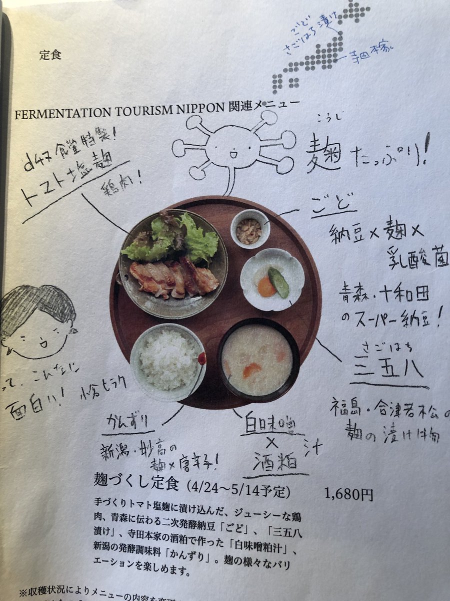 渋谷ヒカリエで開催されている発酵の展示に行ってきました!初めてくさやの匂いを嗅いだけど、想像以上でびっくらこきました。こちらのd47食堂の発酵特別定食に出てきた「ごど」が面白い味で気に入りました。粕汁も滋味溢れる味わいで、ほっとしました。 pic.twitter.com/Z19ClhTClH 2019-05-07 23:02:00