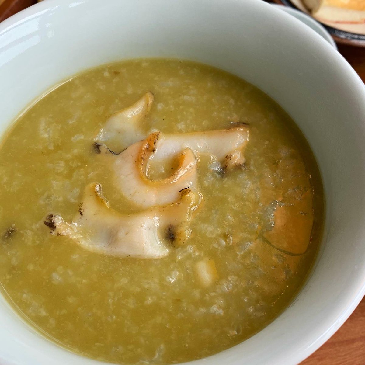 渋谷ヒカリエのd47食堂の韓国済州島のあわび粥モーニング。韓国から仕入れた鮑で炊いた贅沢なお粥。付け合わせも美味しかった...😍定期的にやってほしいです。おかわりしたかったよー😬 pic.twitter.com/qtSLrM4QH9