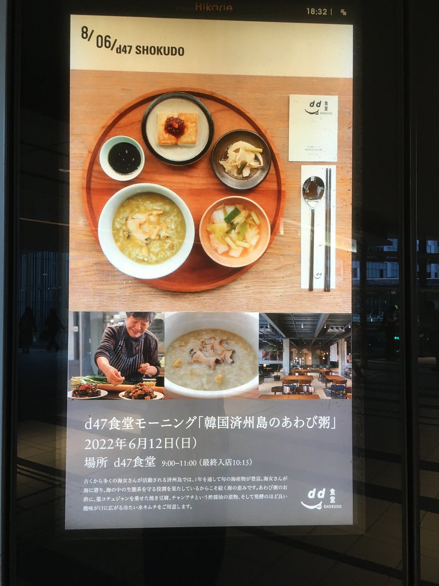 そういえば、ヒカリエの電子広告で見たd47食堂のモーニング がおいしそうだった。今日は韓国済州島のあわび粥だったみたい。 pic.twitter.com/p2waRVHgxe 2022-06-12 20:40:00