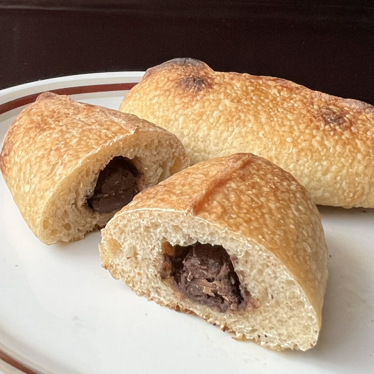 宗像堂のパンオショコラにはタイムレスチョコレートのチョコが入っているよ😋🍫