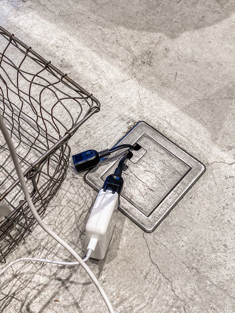 床に電源がたくさんあるが、積極的には使って欲しくない様子