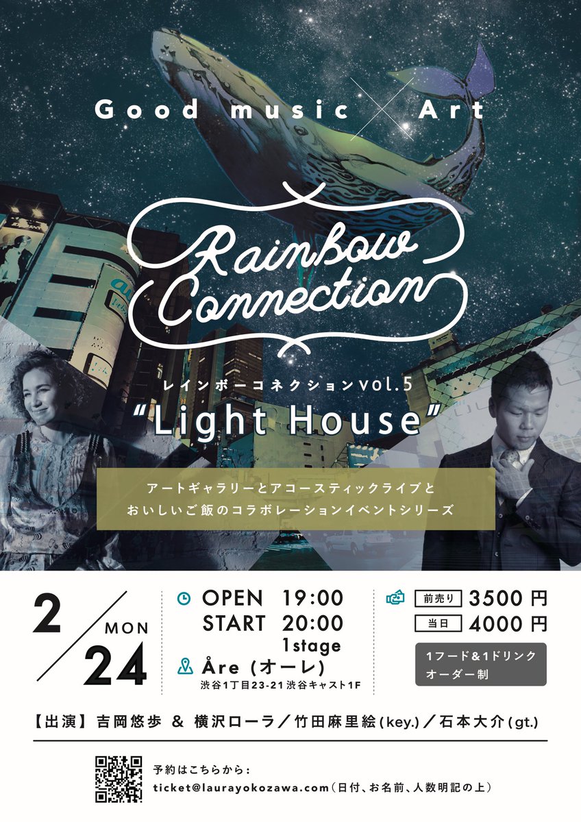 2/24(月,祝)Rainbow Connections "Light House" 吉岡悠歩&横沢ローラ @渋谷Åre (オーレ)