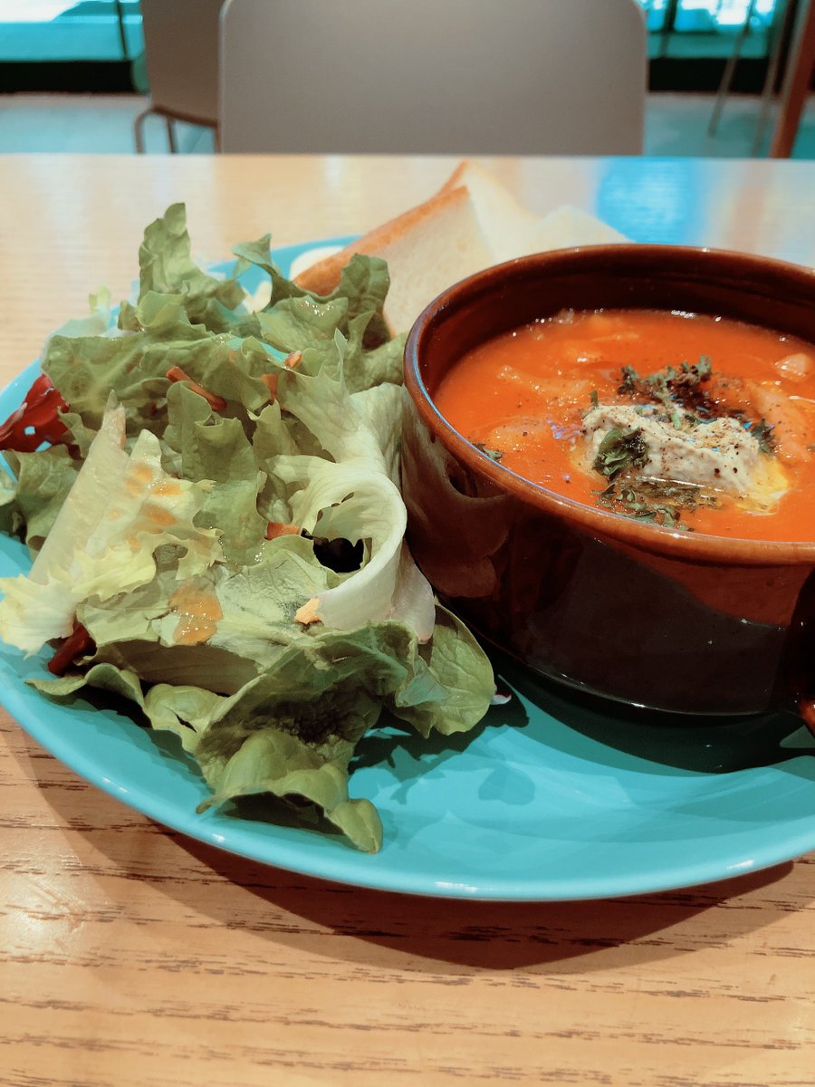 こんにちは☺🔅今日も渋谷キャストのÅreさんでランチŧ‹"( 'ч' )ŧ‹"ミネストローネとパンとサラダ、チョコプリン単品とアールグレイ𓏸𓂂𓈒🫖南部鉄器いいね重いけど冷めにくいし美味しかった😋 pic.twitter.com/WeQICdgl8u 2022-02-07 13:09:00