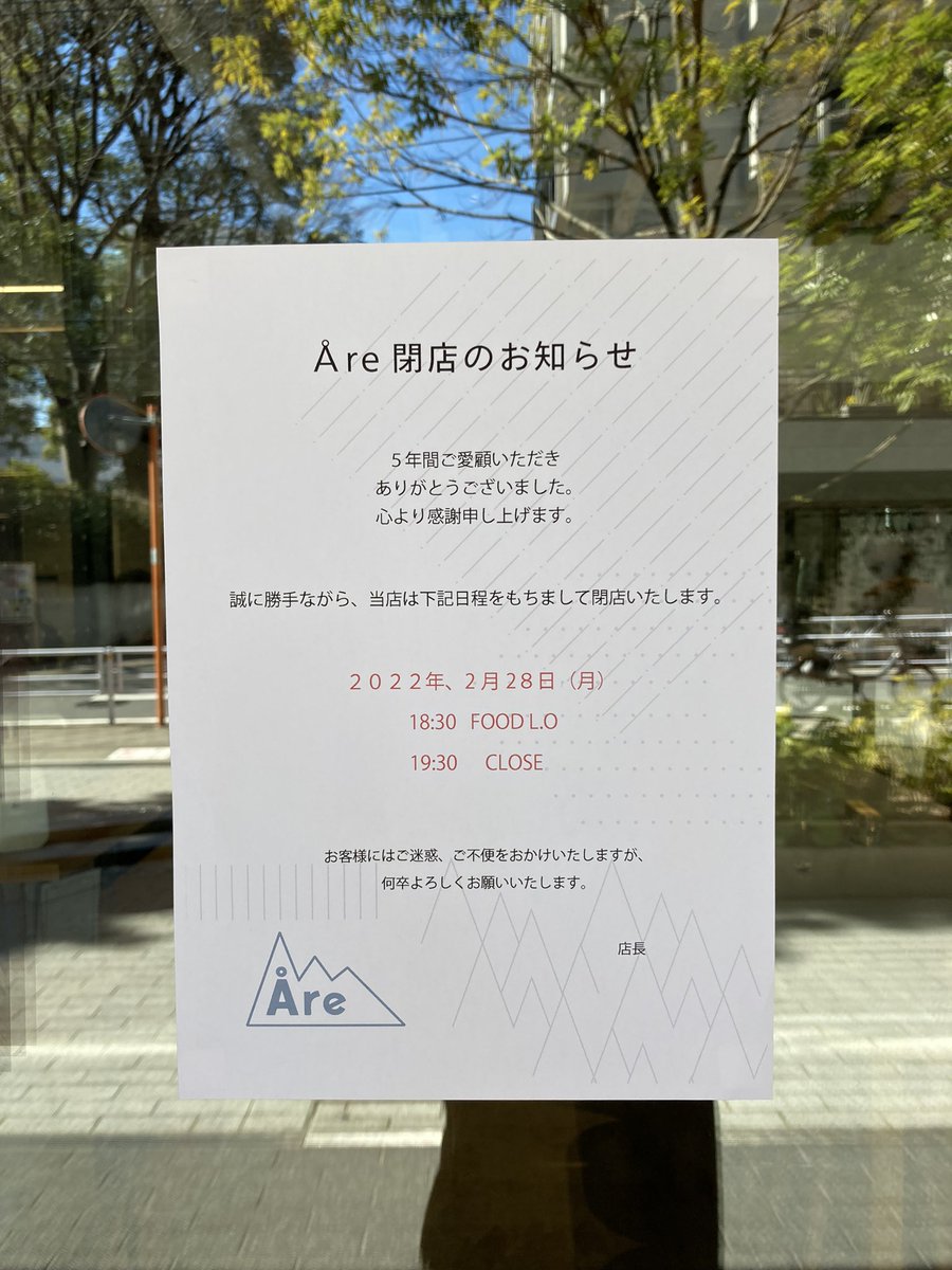 【Åre閉店のお知らせ】