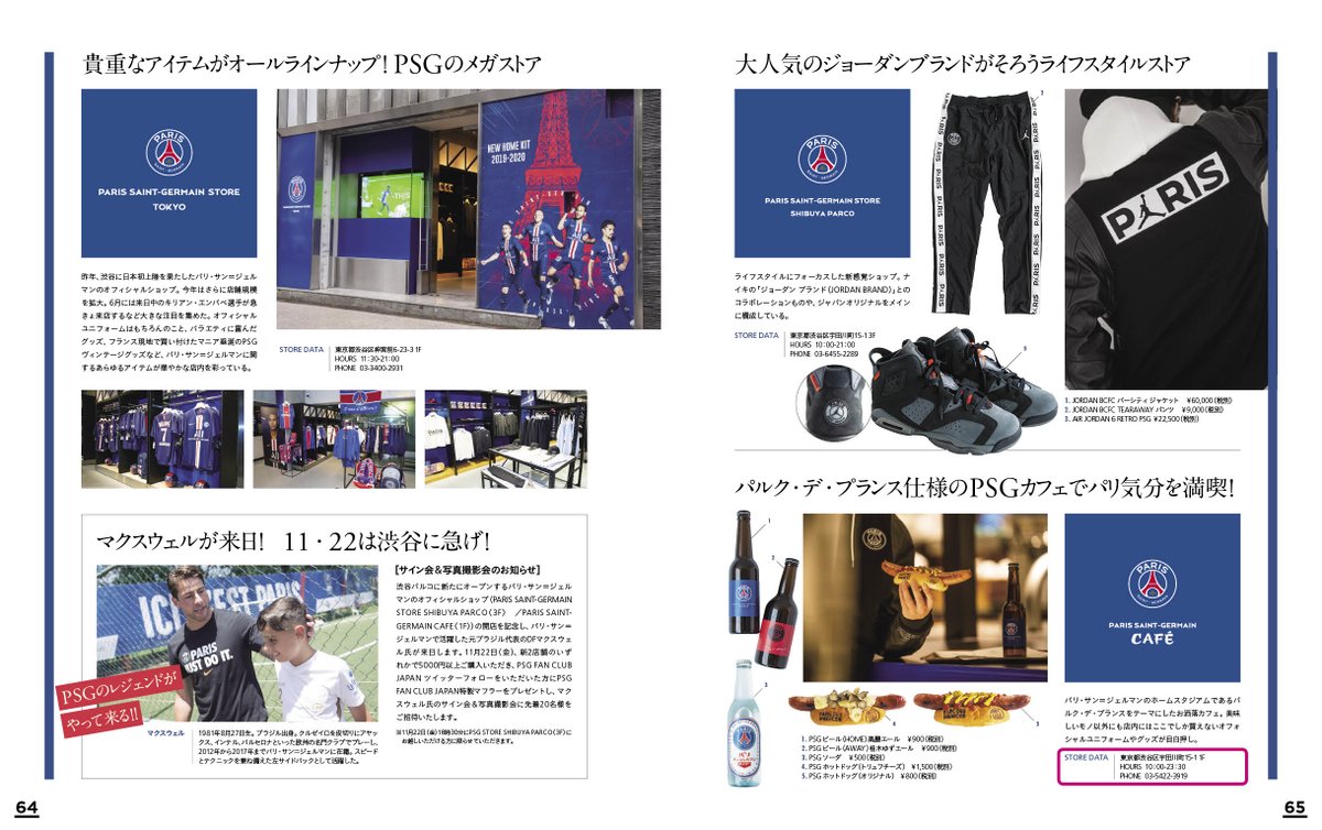 P65に掲載しております「PARIS SAINT-GERMAIN CAFÉ」の営業時間が間違っておりました。正しくは以下のとおりです。