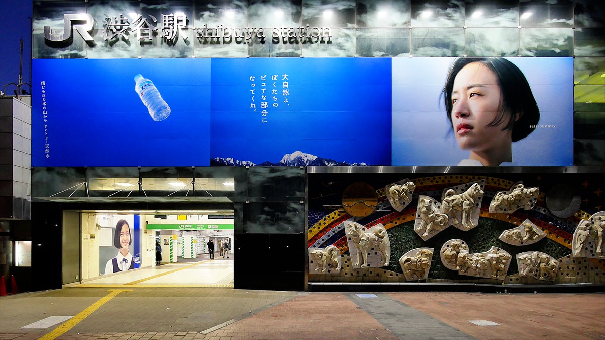 JR線渋谷駅、ハチコーボード「サントリー天然水」#サントリー天然水 #石橋静河 #ooh pic.twitter.com/0VS56AI6eK 2021-04-12 10:09:00