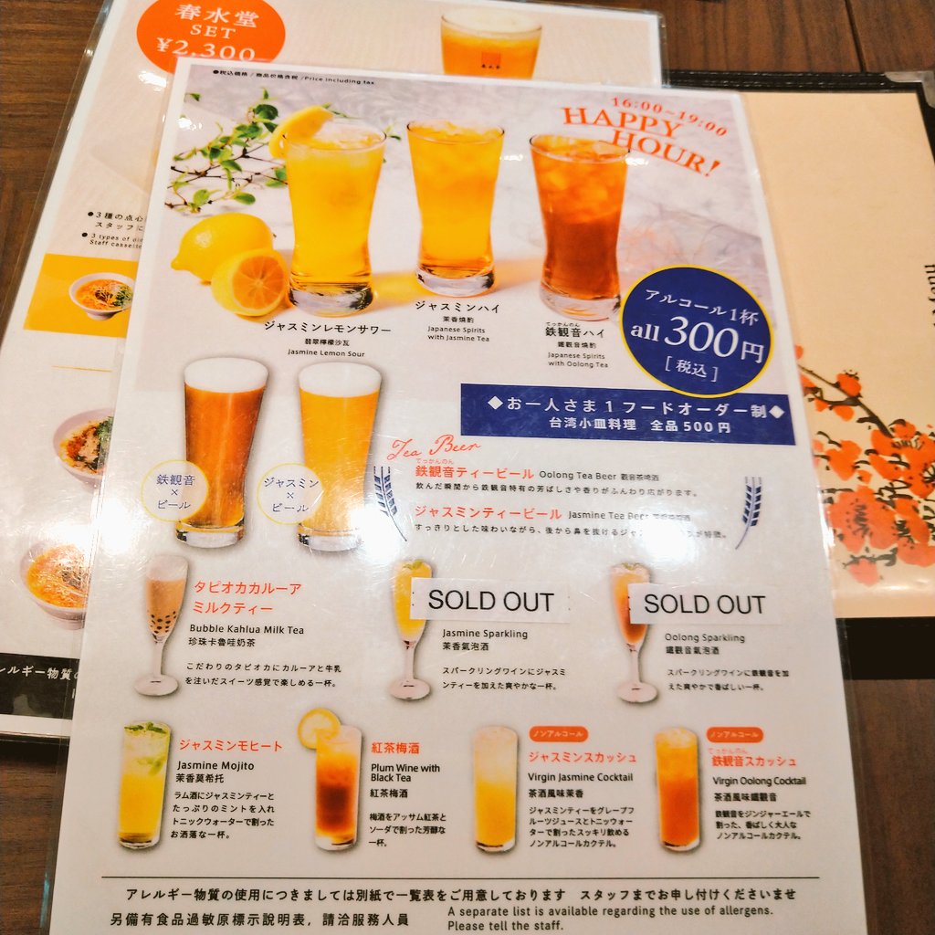また、通常メニューに加え、当店限定となるアルコール入りのティーカクテルや、台湾春水堂で愛されてきたフードメニューも合わせ、約130種類以上取り揃えております。